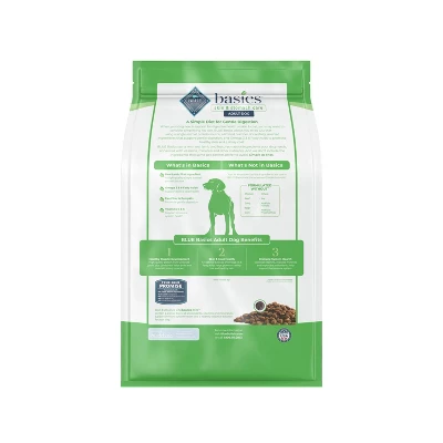 BLUE Basics Dog Food is a delicious, limited-ingredient diet made from fewer ingredients selected with care, that may prove helpful to dogs with food sensitivities. All BLUE Basics recipes start with real meat from a single animal protein source not often used in dog food, plus they include pumpkin and easily digested carbohydrates.