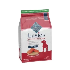 • Contains (1) 4lb bag of BLUE Basics Limited Ingredient Diet, Grain Free Natural Adult Dry Dog Food, Salmon & Potato