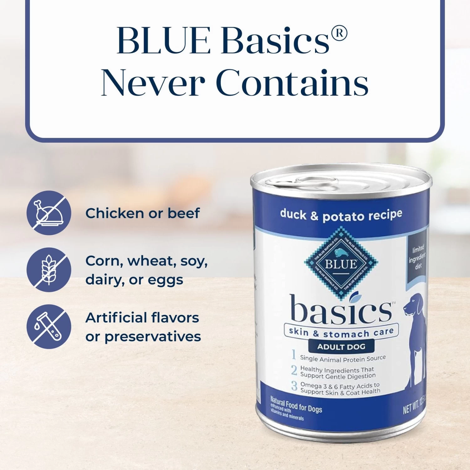 - Blue Buffalo Basics adult wet dog food makes a delicious treat, adds interest to your dog’s favorite dry food or can be fed as a meal on its own.