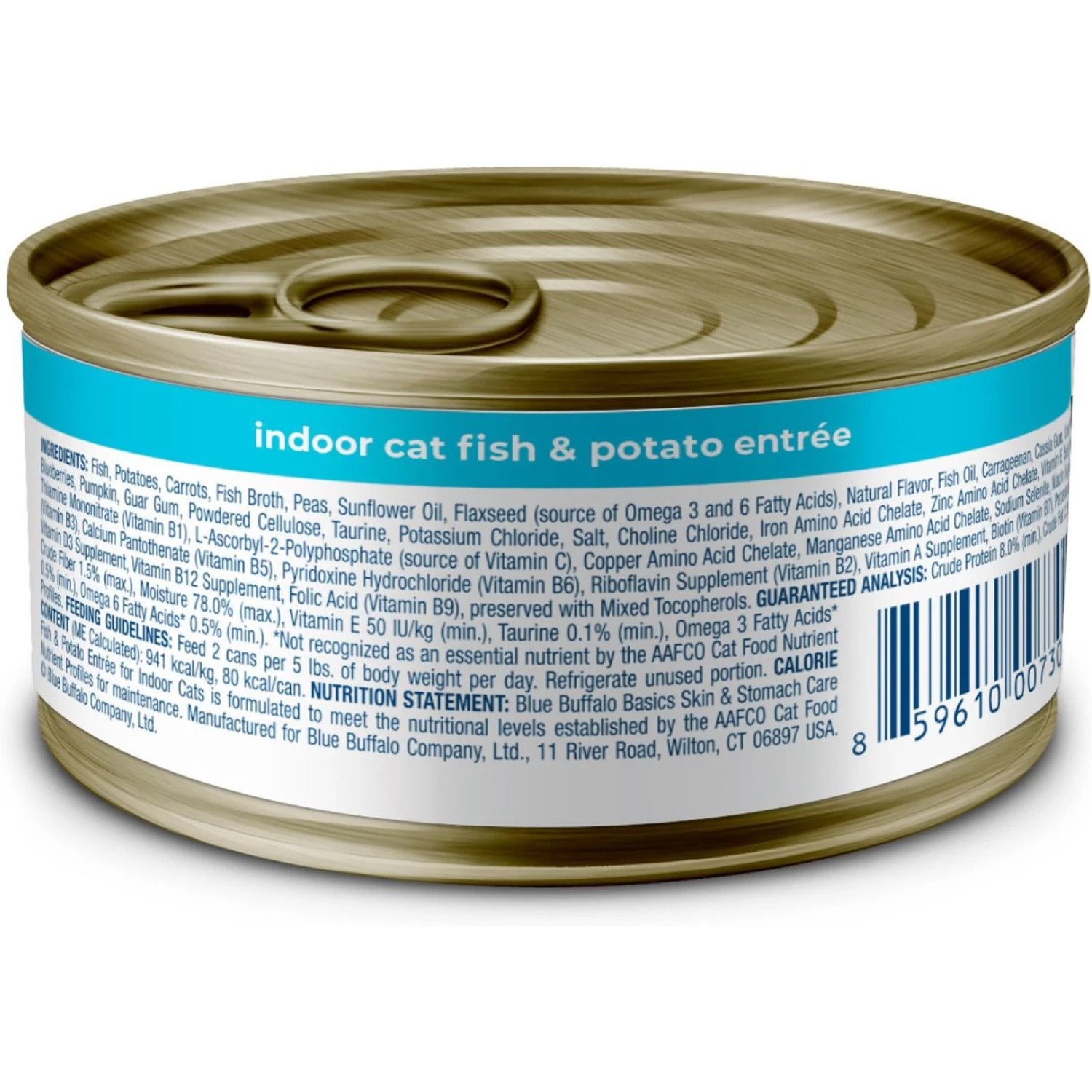 - Blue Buffalo Basics wet cat food contains no wheat, a common thickening agent.
