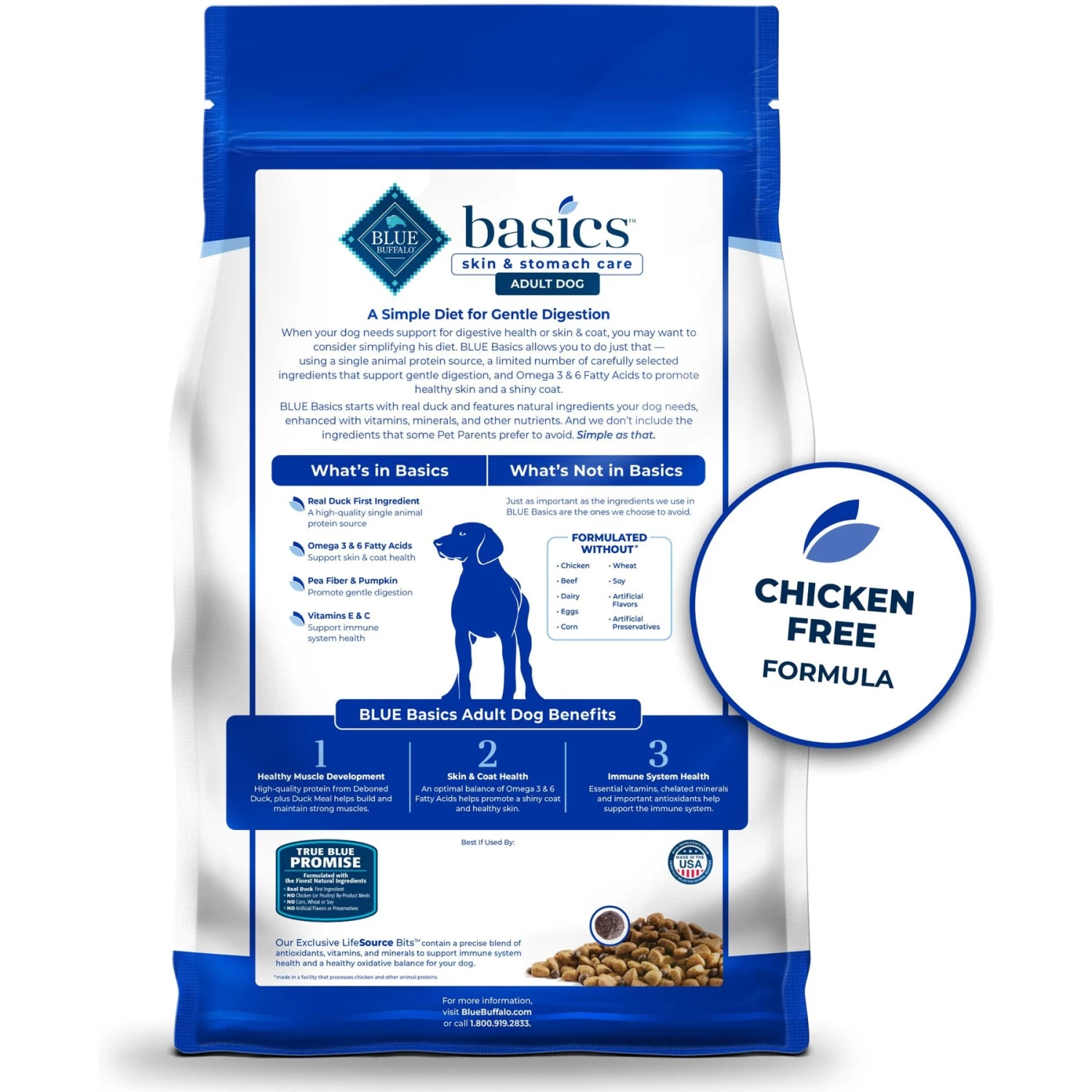 - Blue Buffalo Basics is a limited ingredient, grain-free dog food that doesn’t contain any chicken, beef, corn, wheat, soy, dairy or eggs—making it a good option for dogs with food sensitivities.