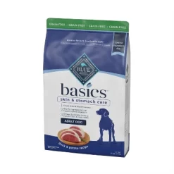 - PACKAGING MAY VARY: Contains one (1) 22lb bag of BLUE Basics Skin & Stomach Care, Grain Free Natural Adult Dry Dog Food, Duck & Potato