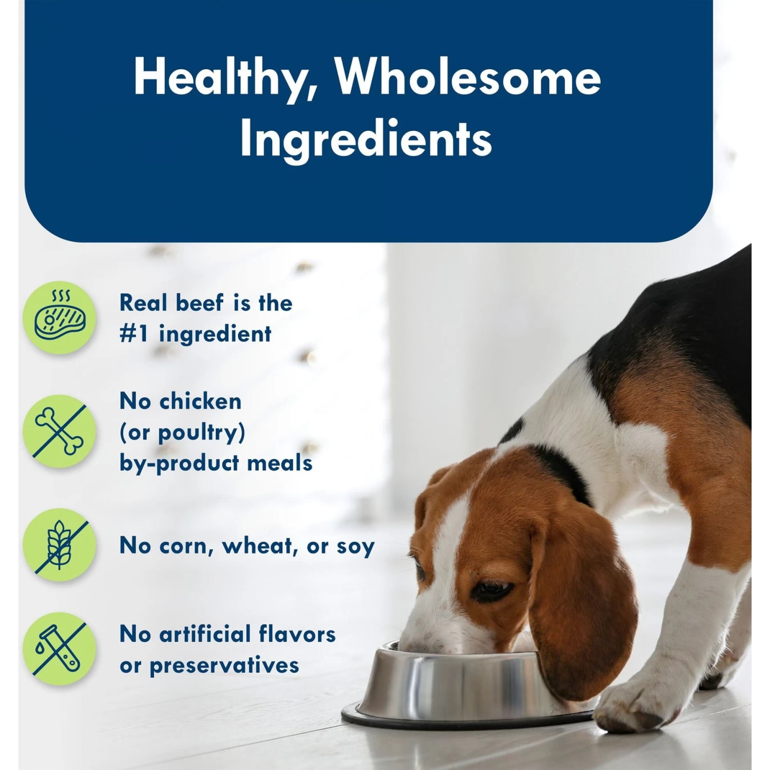 - Completely free from poultry by-product meals, corn, wheat, soy, and artificial flavors and preservatives.