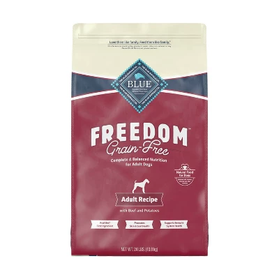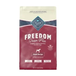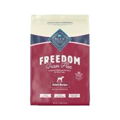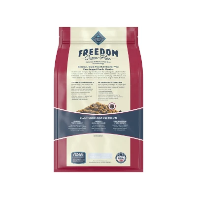 - GRAIN FREE DOG FOOD: BLUE Freedom grain free adult dog food is specifically formulated to meet the nutritional requirements of adult dogs to help provide energy for an active life. Plus, it contains omega 3 & 6 fatty acids to support skin and coat health.