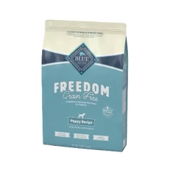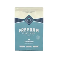 BLUE Freedom is a delicious, grain free formula that contains no gluten. All BLUE Freedom dog food recipes feature high-quality real meat with no chicken (or poultry) by-product meals. Freedom puppy formula contains ingredients like DHA fatty acid to support your puppy’s healthy growth and development at this important stage in life. BLUE Freedom dog food is a product of the Blue Buffalo company. Based in the United States, Blue Buffalo makes premium-quality pet foods featuring real meat, fruit and vegetables.