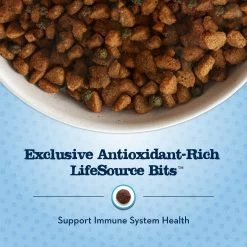 - Free of chicken or poultry by-product meals, corn, wheat, soy or artificial flavors or preservatives.
