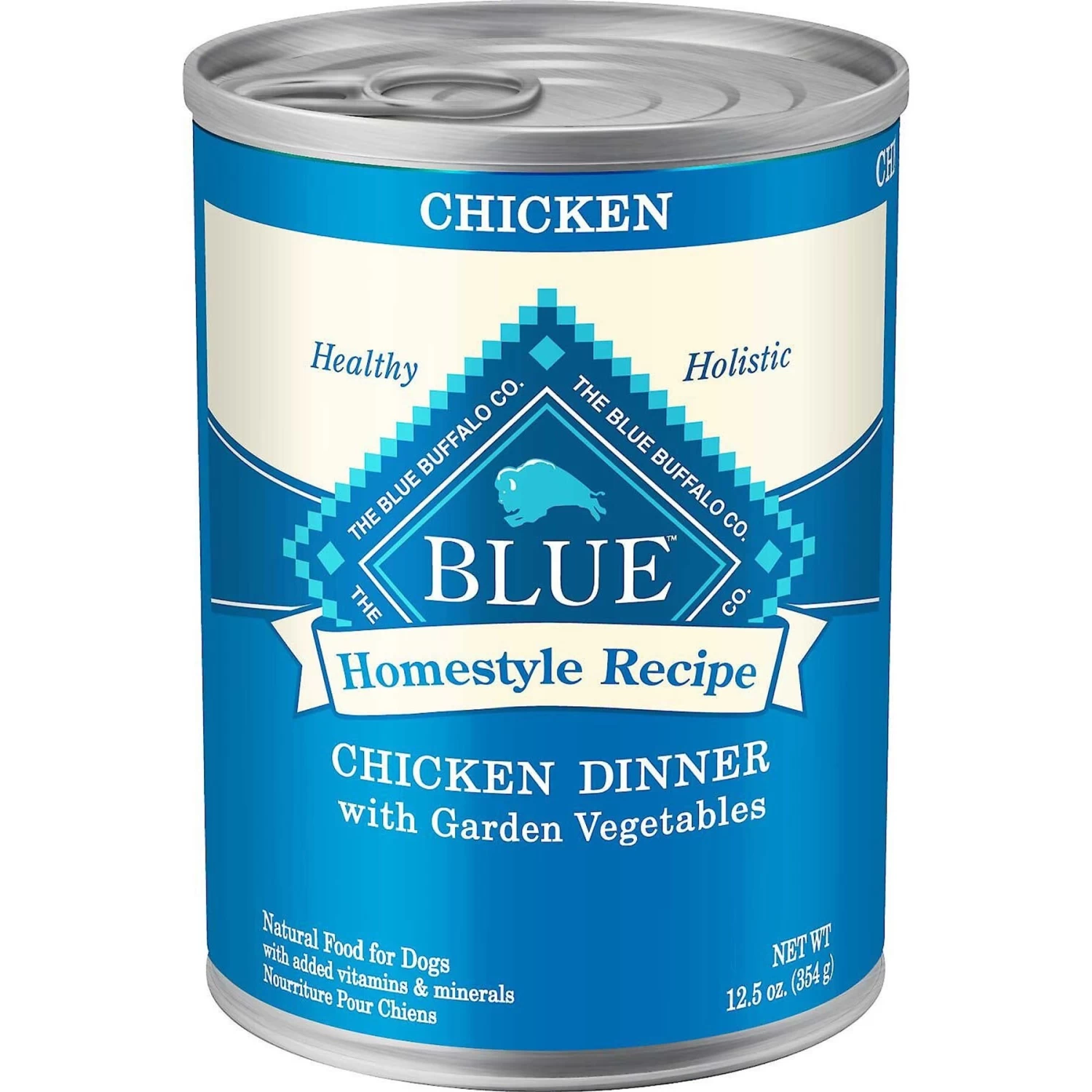 Serve your best buddy the flavorful meat he needs with Blue Buffalo Homestyle Recipe Chicken Dinner with Garden Vegetables & Brown Rice + Beef Dinner with Garden Vegetables & Sweet Potatoes canned dog food. Paw-fect for your doggie dude, this irresistibly tasty wet food is made using only the finest natural ingredients. It starts with high-quality protein from tender chunks of chicken or beef, packed with garden fruits and veggies, then enhanced with vitamins and minerals. Formulated to support lean muscle mass and the other nutritional needs of your adult amigo, this pate-style dog food is made with wholesome ingredients that do not contain any by-product meals, corn, wheat, soy, artificial flavors or preservatives.