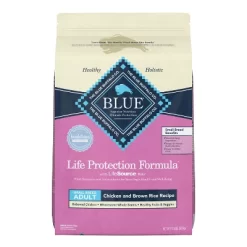 Blue Buffalo Life Protection Formula was created for the health and well-being of dogs. All formulas start with real meat, whole grains, garden veggies and fruit, plus added LifeSource Bits, a precise blend of nutrients that have been enhanced with a Super 7 package of antioxidant-rich ingredients. This Small Breed Adult Chicken & Brown Rice Recipe features delicious, protein-rich deboned chicken and is made with increased protein and carbohydrates to meet higher energy needs of smaller dogs.