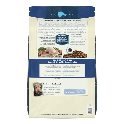 - Contains one (1) 34 lb. Bag of BLUE Life Protection Formula Senior Dry Dog Food, Chicken and Brown Rice