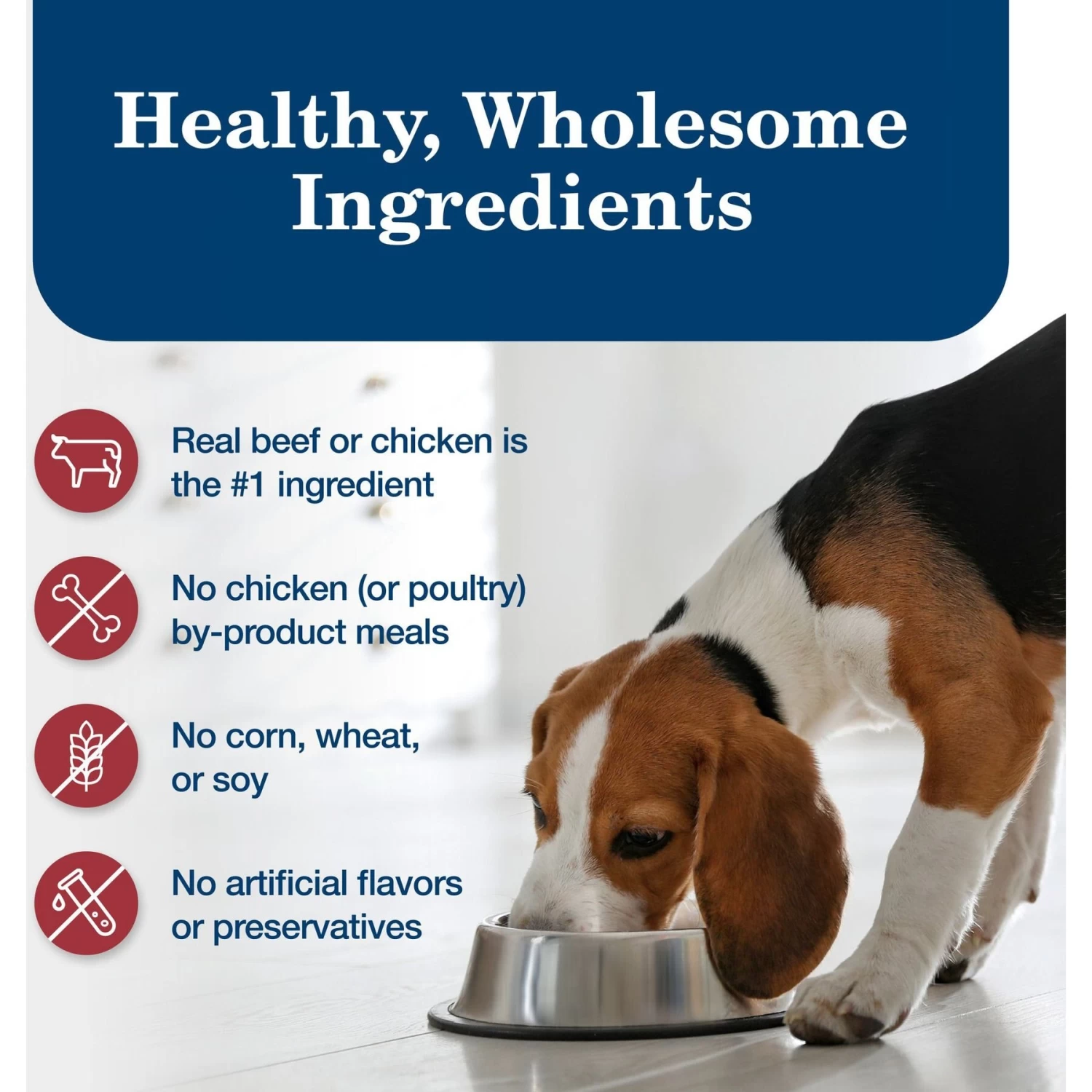 - Free of chicken or poultry by-product meals, corn, wheat, soy or artificial flavors or preservatives.
