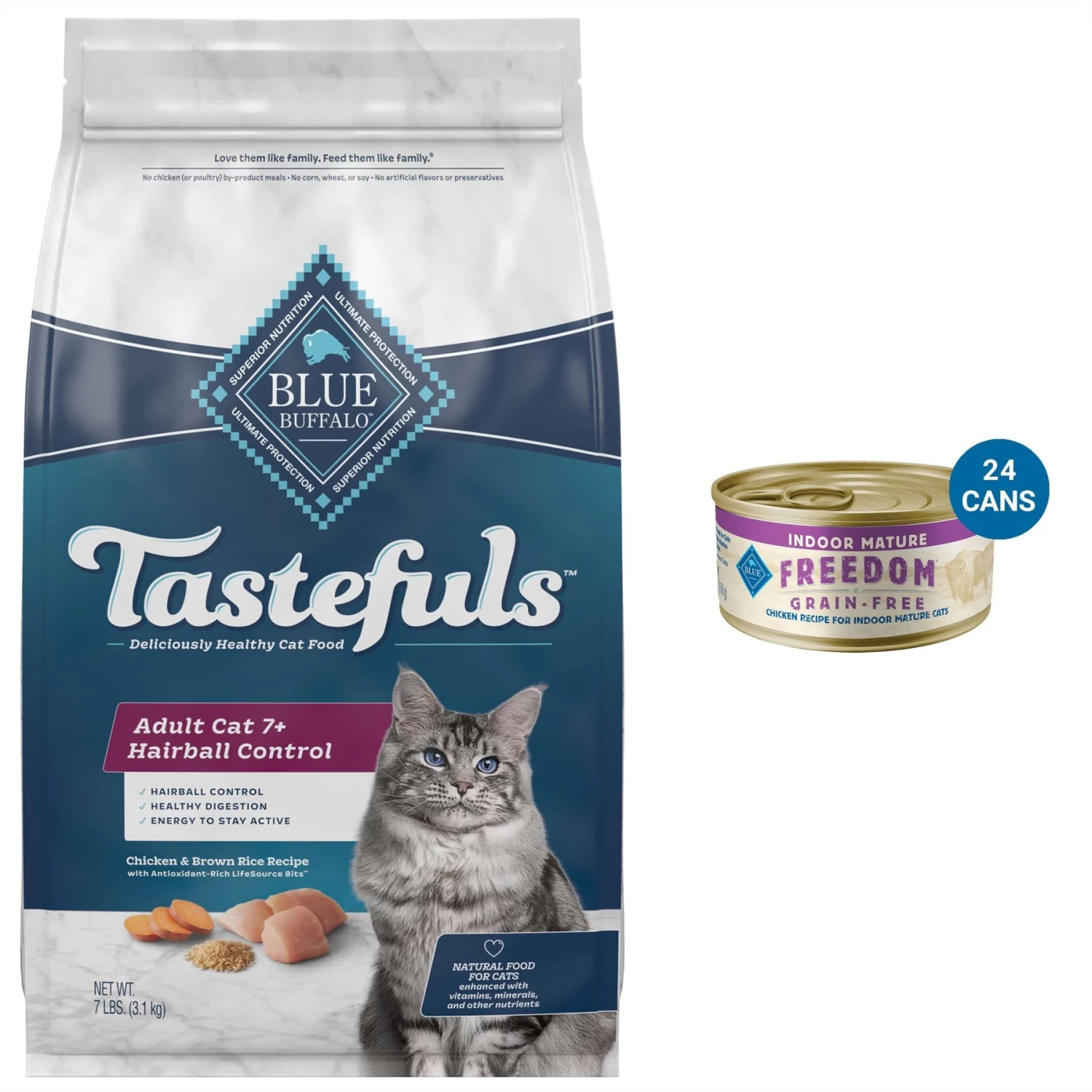 Be the first to review “Blue Buffalo Tastefuls Hairball Control Natural Chicken & Brown Rice Recipe Adult 7+ Dry Cat Food & Blue Buffalo Freedom Indoor Mature Chicken Recipe Grain-Free Canned Cat Food” Cancel reply