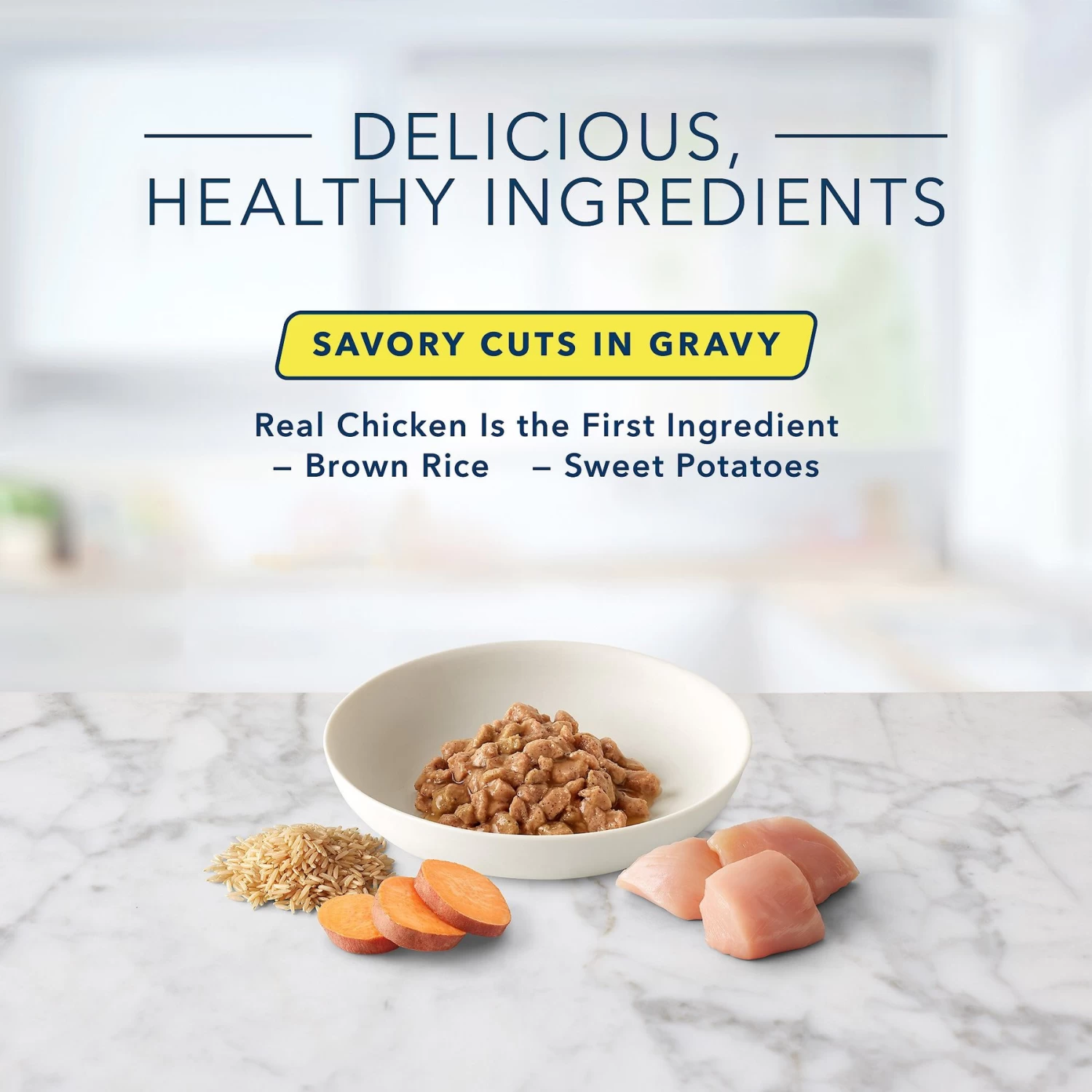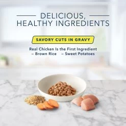 - Made of delicious chicken, brown rice, sweet potatoes, and savory gravy.